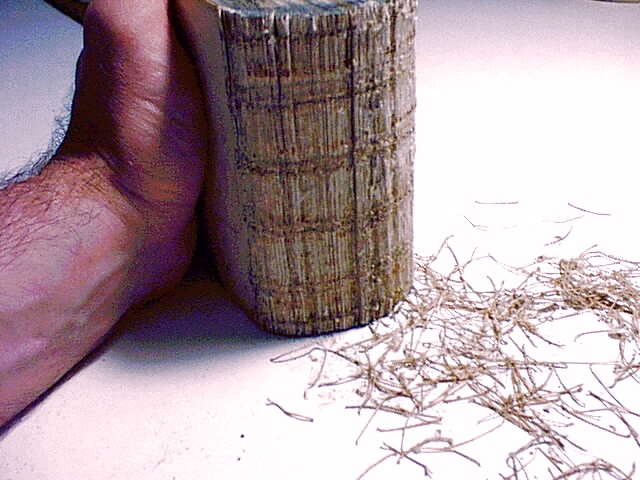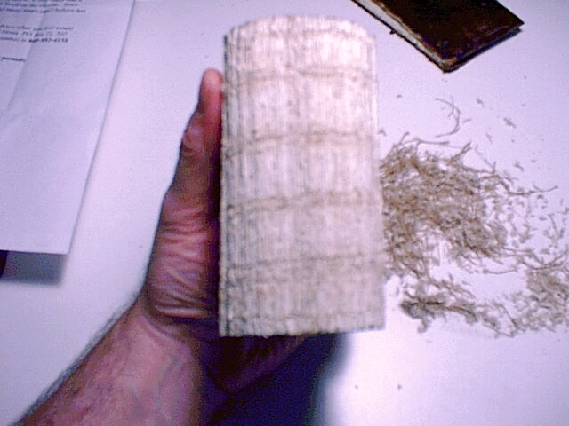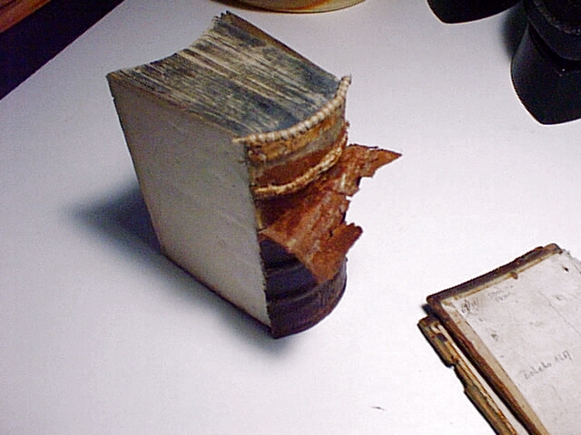cleaning of the spine of each signature. Note the pile of scrapings.