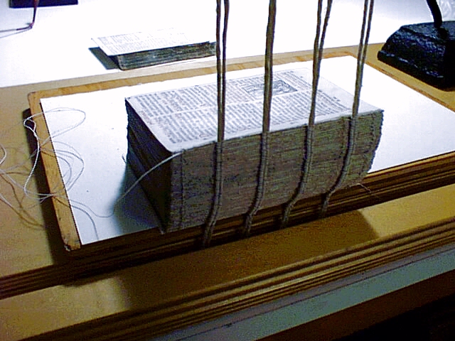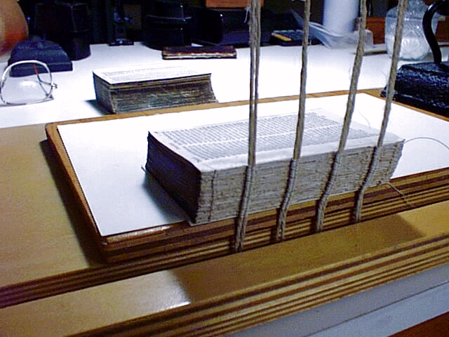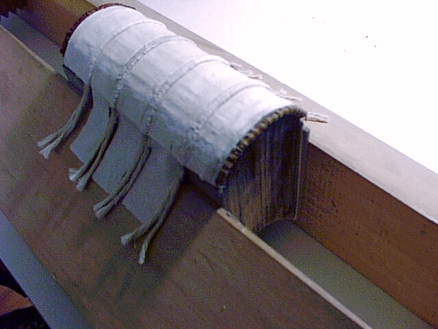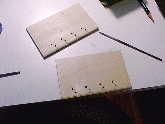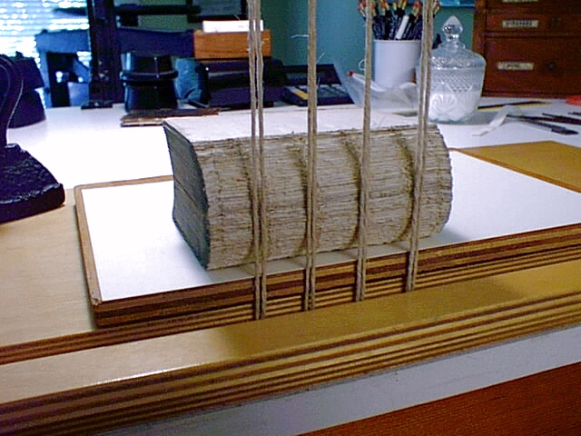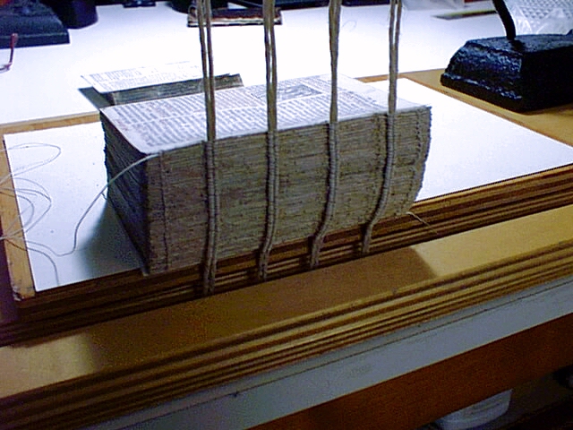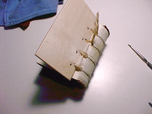 rounded at the spine. Sets of holes are drilled for each set of cords, and a small