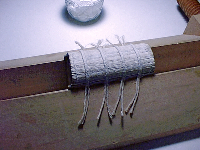 up. Spine covered in light coating of adhesive, then a thin sheet of Kozo